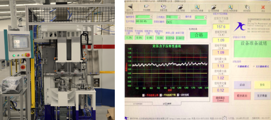 The cone bearing dynamic testing machine is used to test the bearing quality to ensure that dynamic data nonconforming bearings are not assembled, and the bearing pre-tightening force corresponding to the real-time testing of the bearing pair is correlated with the data of the driving gear nut tightening machine, so that the bearing can be used in the optimal state.